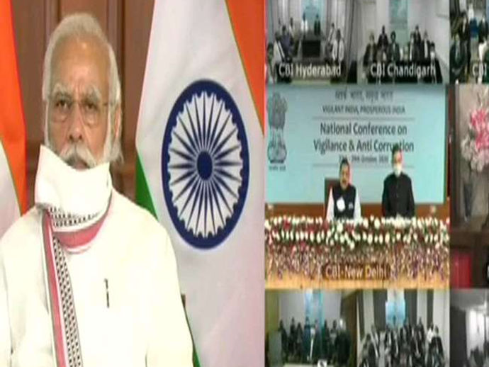 प्रधानमंत्री नरेंद्र मोदी वीडियो कॉन्फ्रेंसिंग के माध्यम से सतर्कता और भ्रष्टाचार विरोधी राष्ट्रीय सम्लेन के उद्घाटन समारोह में हिस्सा ले...